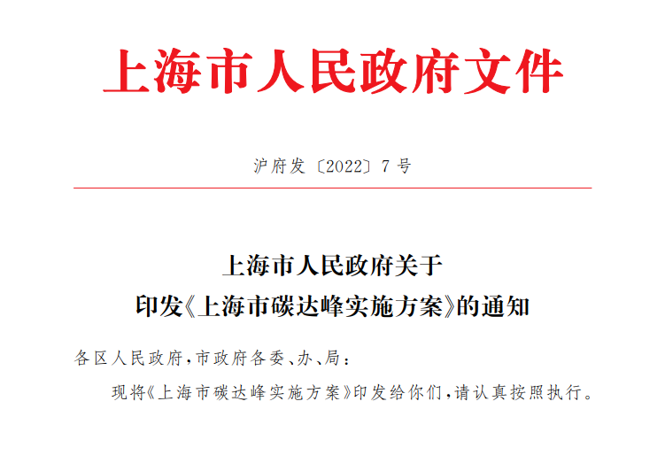 2022年7月8日, 上海市人民政府发布《关于印发<上海市碳达峰实施方案>的通知》。文件中指出,2025年可再生能源占全社会用电量比重力争达到36%。十四五”期间上海市煤炭消费总量下降5%左右,煤炭消费占一次能源消费比重下降到30%以下,确保2030年前实现碳达峰。