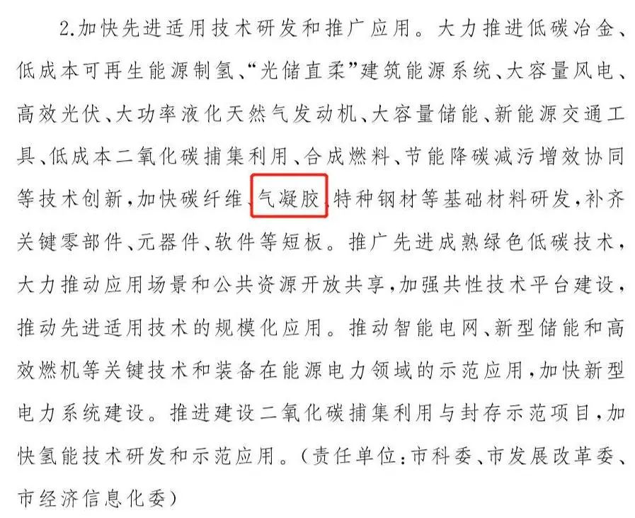 文件在“加快先进适用技术研发和推广应用”部分指出:加快碳纤维、气凝胶、特种钢材等基础材料研发。